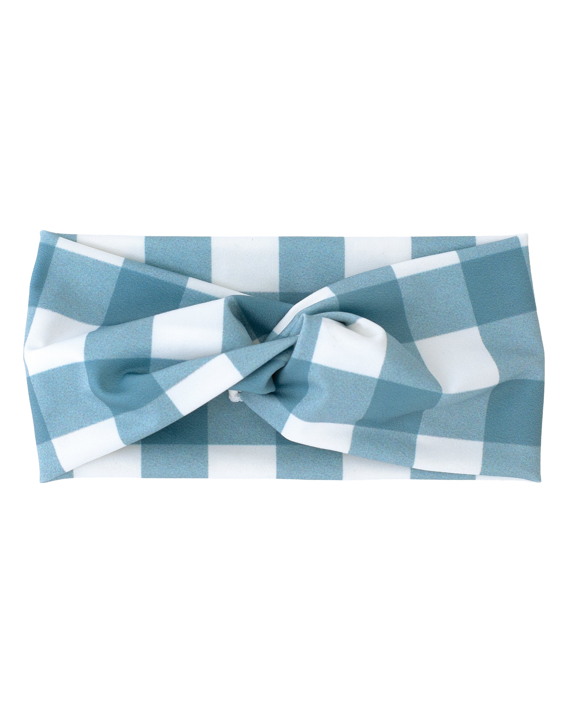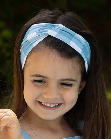 Turbante rosa a juego con toda la Colección Cuadros Azul de Primavera Verano de Calamaro Baby.