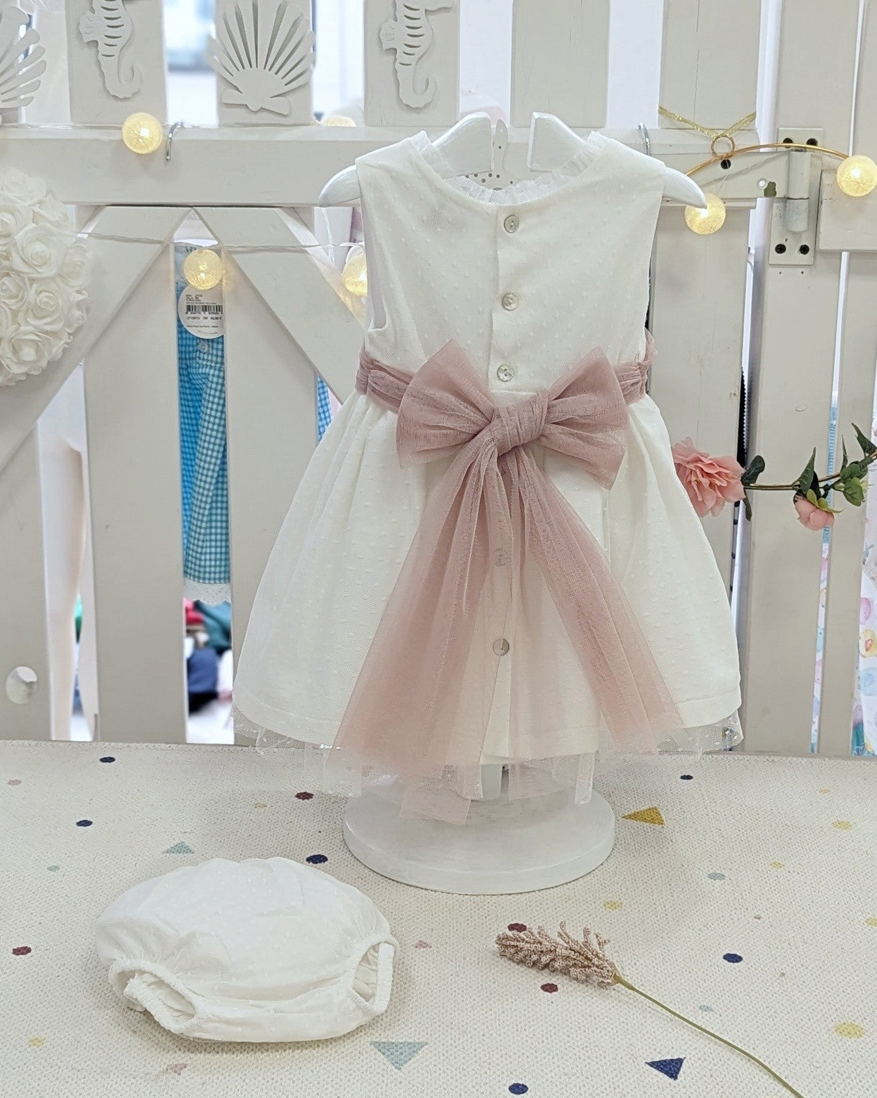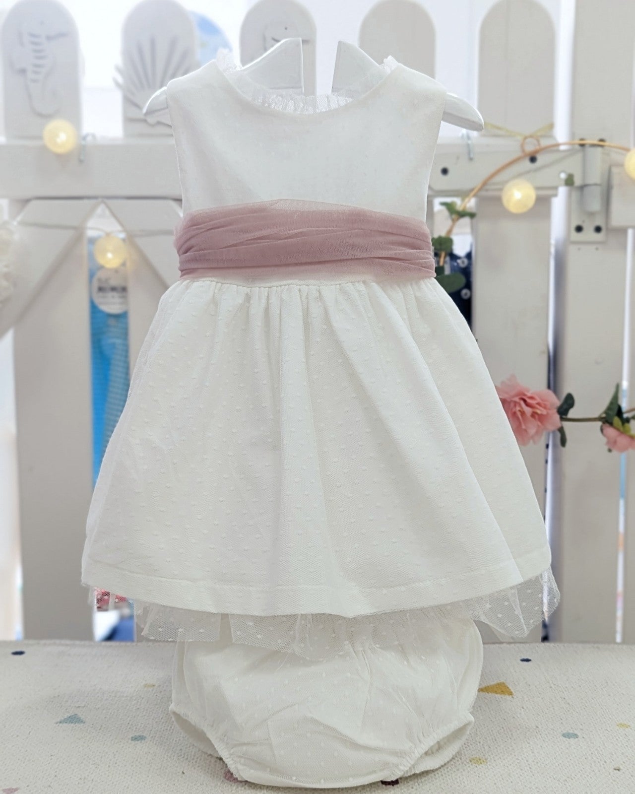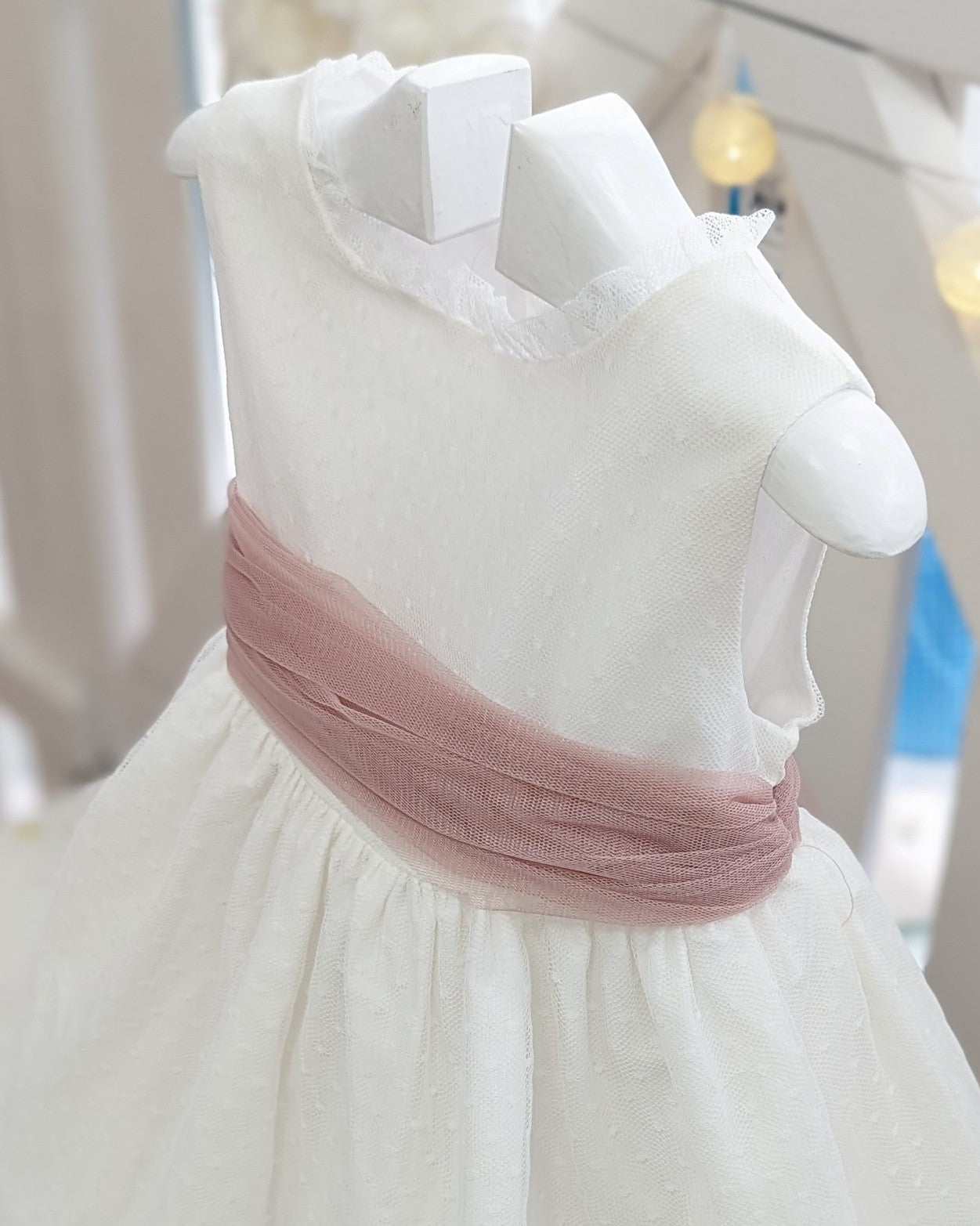 Vestido Bebe con Cinturon Tul Rosa Empolvado - Coco Acqua