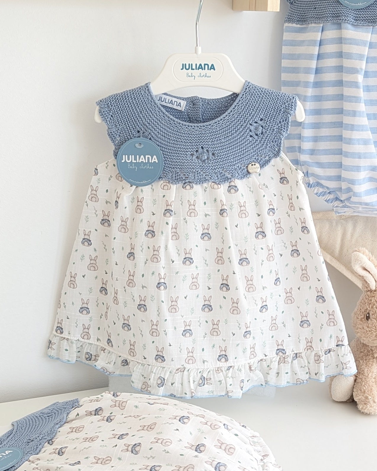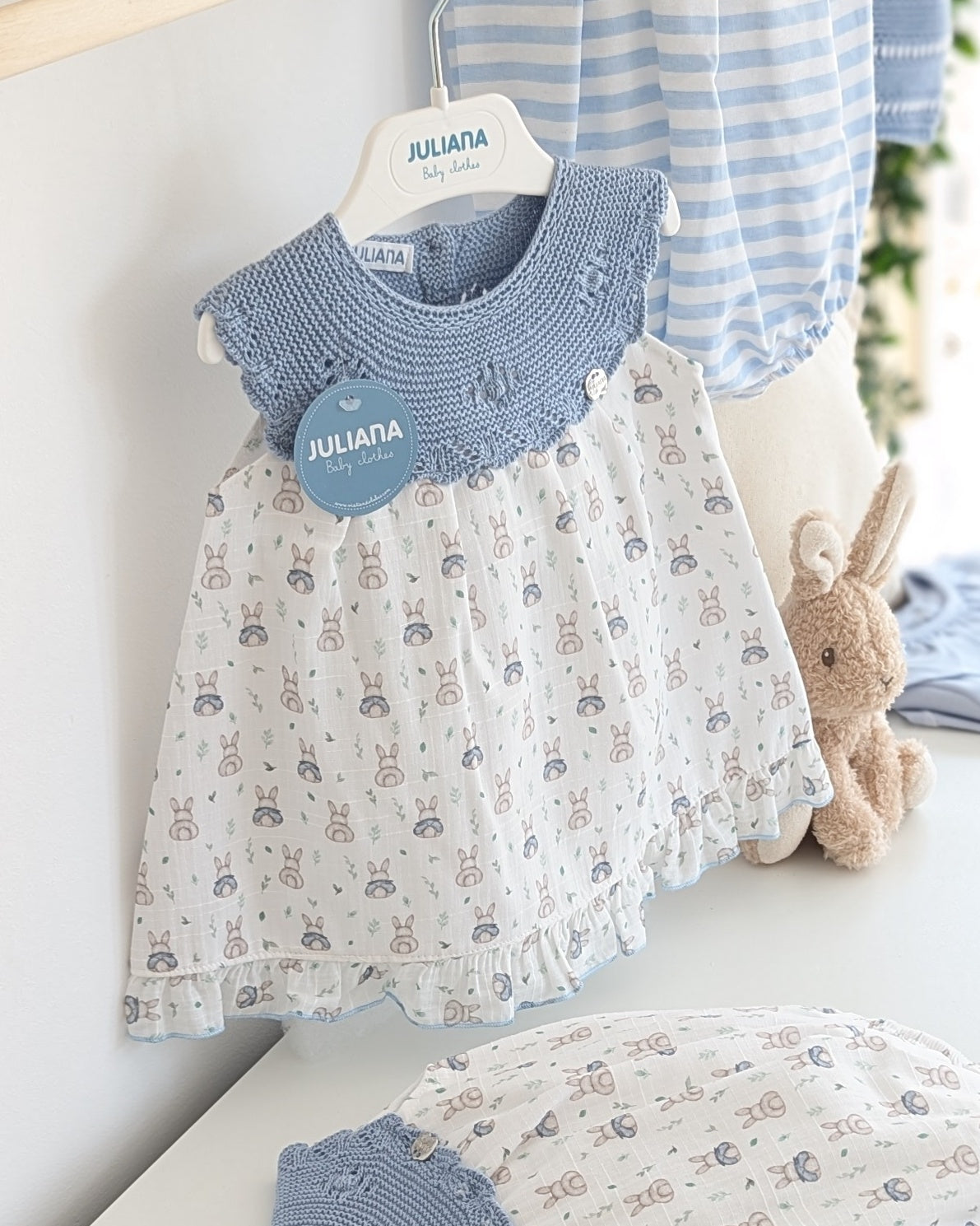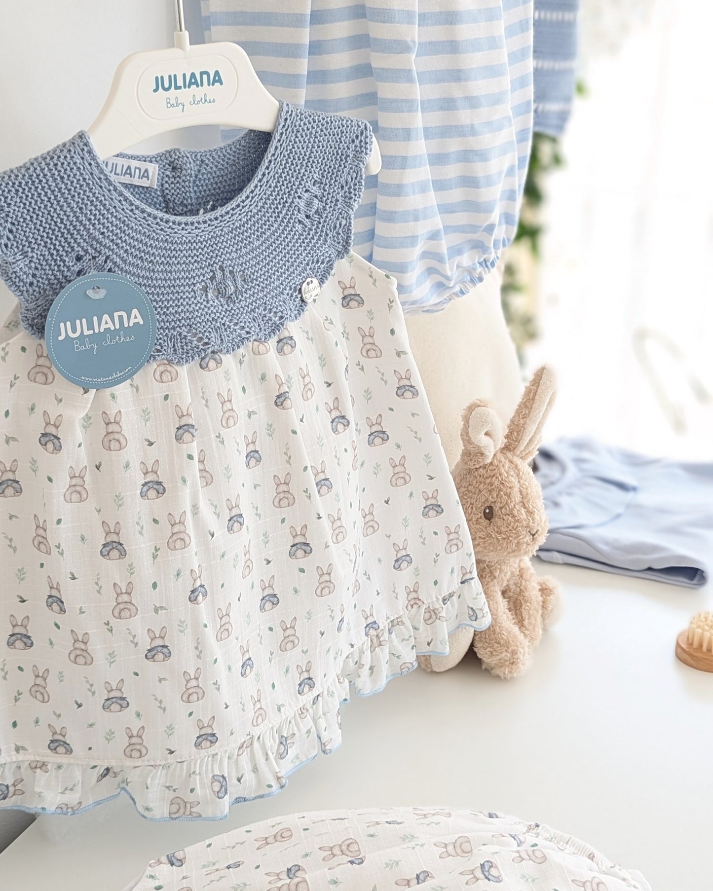 Vestido Conejitos Cielo - Colección Jugo Juliana