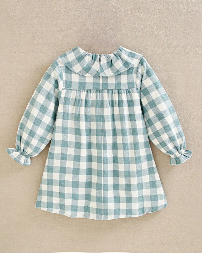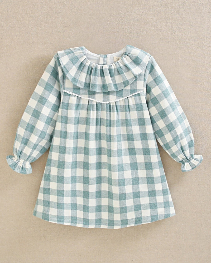 Vestido de niña cuadros cuello volante Colección Never - Dadati